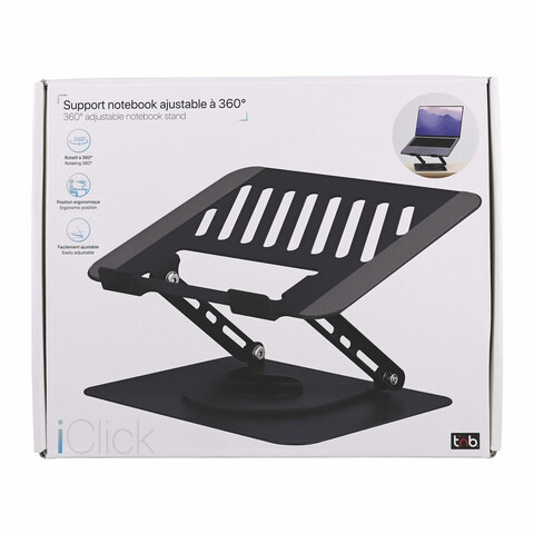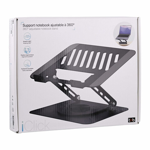 T'NB ապրանքանիշի iClick նոութբուքի հենակը աքսեսուար է, որը նախատեսված է նոութբուքով աշխատելիս ավելի մեծ հարմարավետություն և էրգոնոմիկա ապահովելու համար: Պատրաստված ամուր մետաղից, այն ապահովում է ամուր և երկարակյաց կառուցվածք, որը կարող է կայունությամբ կրել տարբեր չափերի և քաշերի նոութբուքեր: Դրա մուգ մոխրագույն ծածկույթը առաջարկում է էլեգանտ և աննկատ տեսք, որը հեշտությամբ տեղավորվում է ցանկացած աշխատանքային տարածքում, լինի դա մասնագիտական, թե տնային գրասենյակ: Այս մետաղական հենակը առանձնանում է իր 360° պտտվող ունակությամբ, որը թույլ է տալիս կարգավորել նոութբուքի դիրքը՝ համապատասխանեցնելով տարբեր դիտման կարիքներին և կեցվածքներին, նպաստելով ավելի լավ էրգոնոմիկայի և նվազեցնելով հոգնածությունը երկարատև օգտագործման ժամանակ: Դրա դիզայնը որպես նոութբուքի հենակ հեշտացնում է օդափոխությունը՝ օգնելով կանխել գերտաքացումը՝ սարքը մակերեսից վեր բարձրացնելով: Բացի այդ, այն համատեղելի է շուկայում առկա նոութբուքերի մեծ մասի մոդելների հետ, ինչը այն դարձնում է բազմակողմանի տարբերակ գործնական և ֆունկցիոնալ լուծում փնտրող օգտատերերի համար: Ամփոփելով՝ T'NB iClick հենակը համատեղում է ամրությունը, ֆունկցիոնալությունը և զգույշ դիզայնը՝ ապահովելով հուսալի և կարգավորելի հենարան, որը բարելավում է նոութբուքի օգտագործողի փորձը ցանկացած միջավայրում: