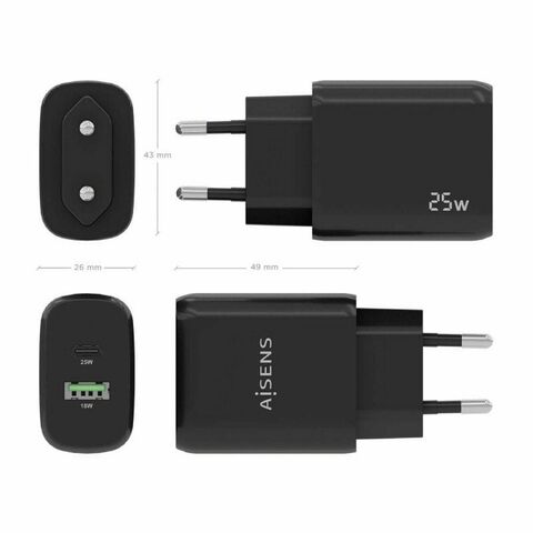 Պատի լիցքավորիչ Aisens A110-0759 Սև 25 Վտ (1 հատ) անգերազանցելի գնով։