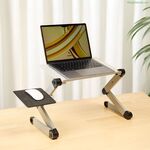 Կարգավորվող բազմաֆունկցիոնալ սեղան, իդեալական է նոութբուքի վրա աշխատելու համար: Այն նաև շատ օգտակար է ուտելու, որպես երաժշտական տախտակ և այլն: Իր մեծ բազմակողմանիության և հարմարվողական ծալովի դիզայնի շնորհիվ այն կարող է օգտագործվել տարբեր դիրքերում՝ աթոռի կամ հատակի վրա, պառկած կամ նստած, կանգնած կայուն մակերեսի վրա և այլն: Այն ունի առանձին սկուտեղ մկնիկի համար և երկու ոտքեր, որոնք միացված են 3 կետերում՝ մինչև 360º պտտմամբ, ինչը թույլ է տալիս կարգավորել դրա բարձրությունը և թեքությունը, որպեսզի այն կարողանա ապահովել անսահման թվով հնարավորություններ՝ այն ցանկացած պահի լիովին հարմարեցնելու ձեր կարիքներին: Պերֆորացված ալյումինե հենարանը բարելավում է օդափոխությունը և նվազեցնում է գերտաքացումը: Բացի այդ, այն ներառում է ձեռնարկ՝ տարբեր նպատակների համար խորհուրդ տրվող դիրքերով։