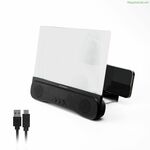 - BT բարձրախոս, կարգավորվող ձայն. մեր բջջային հեռախոսների համար նախատեսված լիցքավորվող էկրանի խոշորացույցն ունի կարգավորվող ձայնի Bluetooth բարձրախոս, որն ապահովում է գերազանց ձայն: 3 Վտ / 4 Ω / 85 դԲ (SNR) / BT 5.1 (2.400-2.483 ԳՀց) 3 մՎտ: