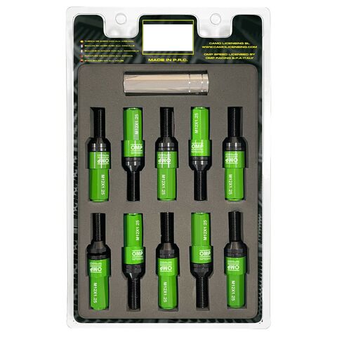 Equip your vehicle with the latest industry products! Buy Screw kit OMP OMPS09971208 28 mm Green M12 x 1,25 and don't miss out on anything!