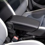 The Armster 3 armrest specifically designed for the SEAT Arona 2018 is a high-quality OEM accessory that offers a perfect fit for the central console of this model, ensuring maximum compatibility and comfort while driving. This central armrest in black features a continuous height adjustment and an adjustable armrest with soft padding on top, significantly improving ergonomics between the driver and passenger seats and reducing fatigue on long trips. It easily folds up to a vertical position for convenience when not in use and includes a 1-litre storage compartment with smooth opening and closing, equipped with a TPE insert that minimizes noise during driving. Additionally, it incorporates a dedicated holder for pens and coins, enhancing functionality without compromising design. The product’s durability and strength are guaranteed by long-term dynamic tests, supporting loads up to 50 kg, ensuring safe and prolonged use. Installation is simple and quick, as it comes with a complete kit and a specific adapter for the SEAT Arona 2018, facilitating assembly without the need for specialized tools. The Armster 3 armrest is available with fabric or vegan leather padding, offering options that combine comfort and style according to user preference. This accessory is the result of Rati’s expertise, a company with extensive experience since 1986 in developing original car accessories, guaranteeing with this product a balance of functionality, comfort, and quality that adds value and enhances the driving experience in the SEAT Arona 2018.