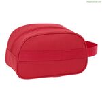 The Safta travel toiletry bag is a practical and functional accessory designed to organize and carry personal items during trips or short stays. Made of 600d polyester, a durable and resistant material that provides good protection against wear and is easy to clean, this toiletry bag measures approximately 26 x 15 x 12 cm, offering a compact size with enough capacity to hold hygiene products, cosmetics, or small personal items. Its red color adds a distinctive and visible touch, ideal for locating it easily in suitcases or bags. It also features a handle adapted for luggage trolleys, allowing it to be comfortably held or attached to a trolley frame, facilitating transport in airports or stations. This travel toiletry bag combines functionality with a simple yet effective design, made for users who value an organized and practical solution for their essential items while traveling. It is suitable for occasional trips as well as daily use when securely and neatly carrying personal belongings.