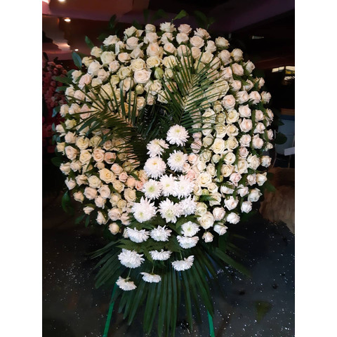 <p>Այս պսակը պատրաստված է 250-300 հատ - Վարդ, քրիզանթեմներ, դիզայներական խոտեր և տերևվներ:</p>