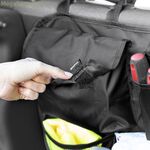 Այս մեքենայի կազմակերպիչը ունի 4 անթափանց գրպան (2-ը՝ փեղկերով) և 4 ցանցե գրպան՝ պարունակությունը արագ և հեշտ դիտելու համար: Այն ունի նստատեղերի համար 3 ամրացնող ժապավեն՝ սեղմակով, և Velcro փակիչներ՝ ավելի լավ ամրացման համար: Այն կարող է հեշտությամբ տեղադրվել և հանվել՝ օգտագործելով ժապավենները և Velcro-ն: