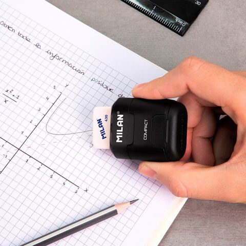 Վերադարձեք գրասենյակ՝ առանց որևէ բան մոռանալու։ Գնեք Մատիտի սրիչ Milan compactserie especial shadow Black բնական կաուչուկ և նախանձեք ձեր գործընկերներին։
