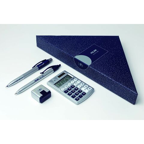 Գրենական պարագաների հավաքածու Միլանի հրատարակության տուփ 4 հատ՝ մուգ կապույտ և նախանձեք ձեր գործընկերներին։