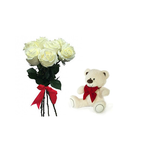 ժապավեն (1) սպիտակ վարդ (7) և փափուկ խաղալիք