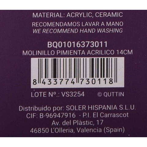 Համեմունքների աղաց Քութթին 6,5 x 6,5 x 15 սմ (18 հատ)