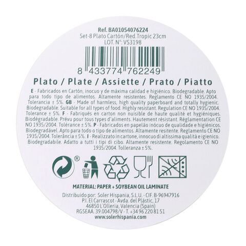 Ափսեների հավաքածու Algon միանգամյա օգտագործման ստվարաթղթե արևադարձային 8 հատ 23 սմ (24 հատ)