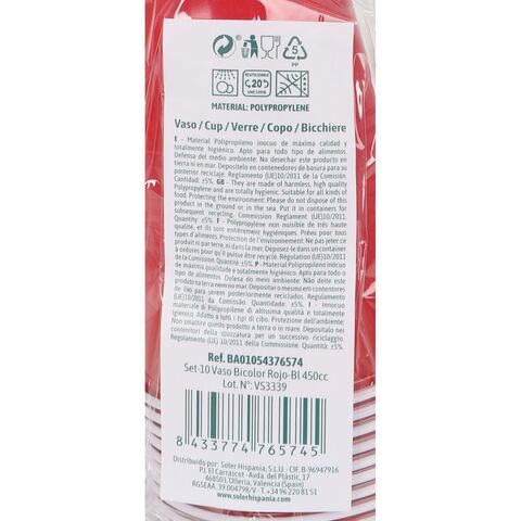 Բազմակի օգտագործման բաժակների հավաքածու Algon պլաստիկ կարմիր 10 հատ 450 մլ (18 հատ)