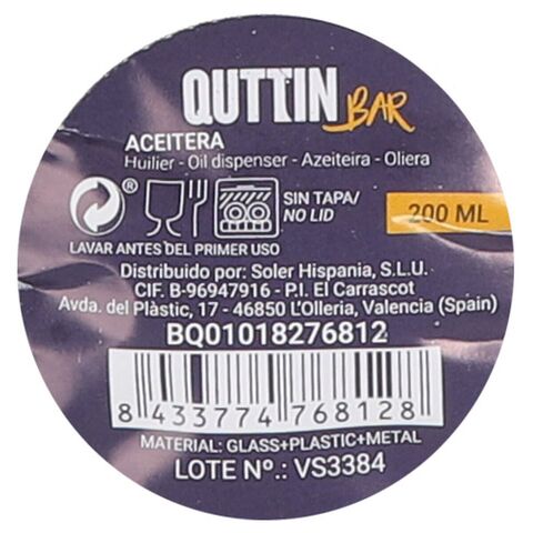 Cruet Quttin թափանցիկ արծաթե ապակի 0,2 լ 5 x 5 x 15 սմ (24 հատ)