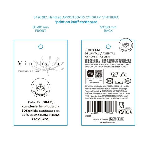 Գոգնոց գրպանով Vinthera Okapi երկգույն տեքստիլ 50 x 110 սմ վերամշակված նյութ