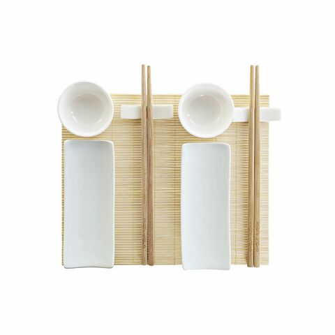Սուշիի հավաքածու DKD տան դեկորի համար՝ բամբուկե քարե սպասք, սպիտակ, բնական, արևելյան, 28,5 x 19,5 x 3,3 սմ (9 հատ) (28,5 x 19,5 x 3,3 սմ)