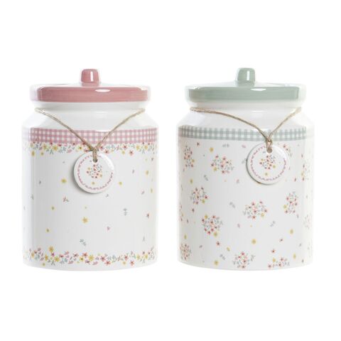 Թիթեղյա DKD տան դեկոր Կանաչ Վարդագույն Գինգհեմ 15,5 x 15,5 x 21 սմ (2 հատ)