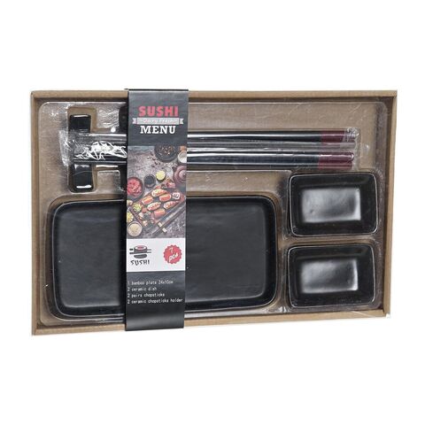 Սուշիի հավաքածու DKD տան դեկորի համար՝ սև բամբուկե քարե ամանեղեն (31,3 x 19,3 x 2,7 սմ)