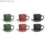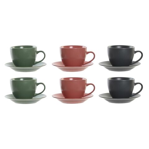 6 բաժակների հավաքածու ափսեով DKD Home Decor Կանաչ Վարդագույն Մուգ մոխրագույն Քարե ամանեղեն 150 մլ 16 x 17 x 35 սմ
