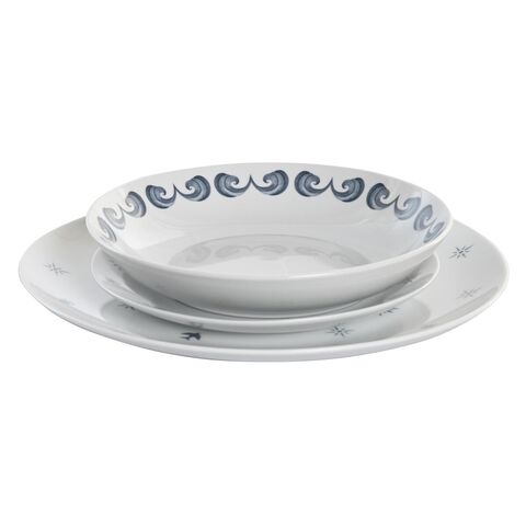 Ճաշի սպասքի հավաքածու DKD տան դեկորի ճենապակյա կապույտ սպիտակ 27 x 27 x 3 սմ 18 հատ