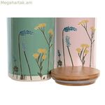 Թիթեղյա DKD տան դեկոր 11,5 x 11,5 x 17,5 սմ ծաղկային վարդագույն կանաչ բամբուկե քարե ամանեղեն Շեբի Շիկ (2 հատ)