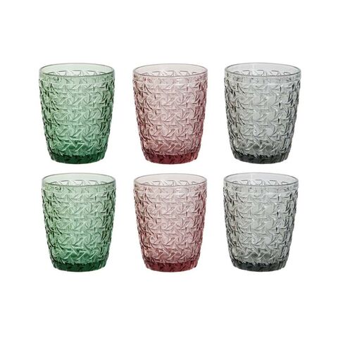 Ակնոցների հավաքածու DKD Home Decor կանաչ մոխրագույն վարդագույն բյուրեղապակյա՝ ռելիեֆով 240 մլ (6 հատ)