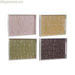 Սկուտեղ DKD Տան դեկոր Կանաչ Մանանեխ Մուգ շագանակագույն Բաց Վարդագույն MDF Փայտ 40 x 30 x 5 սմ (4 հատ)
