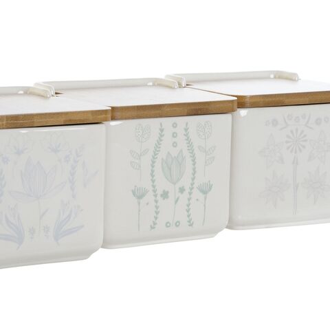 Աղաման կափարիչով DKD Home Decor Կապույտ Սպիտակ Կանաչ Յասամանագույն Բամբուկե Սկանդինավյան 750 մլ 14 x 12,5 x 12 սմ (3 հատ)