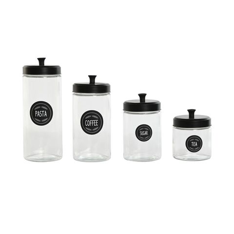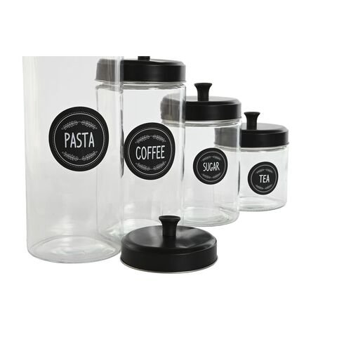 4 աման Home ESPRIT սև մետաղական բյուրեղյա 1 լ 1,5 լ 1,8 լ 10,4 x 10,4 x 26,4 սմ