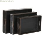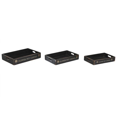 Սկուտեղների հավաքածու Home ESPRIT Սև եղևնու փայտից 56 x 38 x 10 սմ (3 հատ)