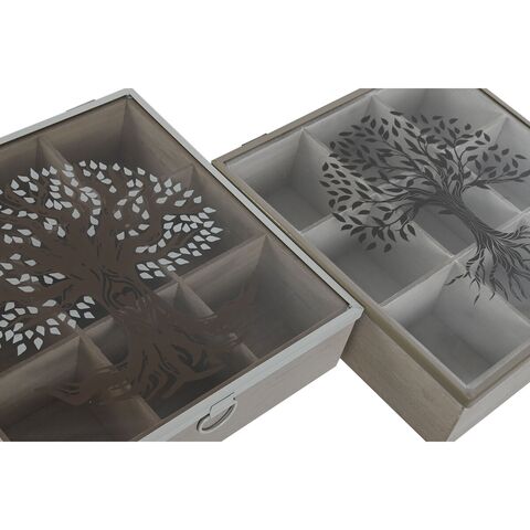 Տուփ թուրմերի համար Home ESPRIT շագանակագույն բեժ մետաղական բյուրեղյա MDF փայտ 24 x 24 x 6,5 սմ (2 հատ)
