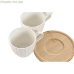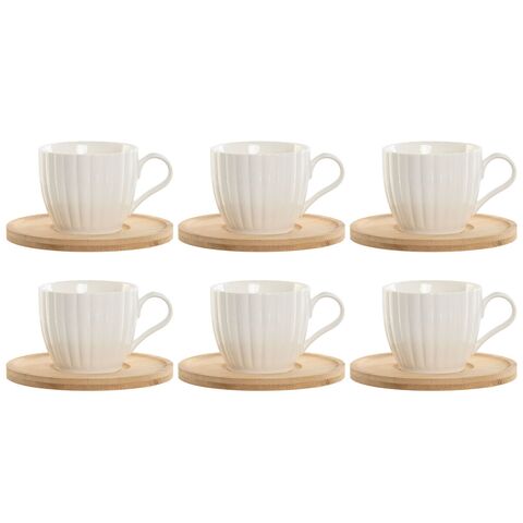 6 բաժակների հավաքածու ափսեով Home ESPRIT սպիտակ բնական բամբուկե ճենապակի 220 մլ