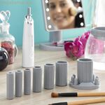 Բնօրինակ և ժամանակակից ավտոմատ դիմահարդարման խոզանակ մաքրող և չորացնող սարք, որը նպաստում է հիգիենայի բարելավմանը՝ առողջ մաշկ պահպանելու համար: Այս 2-ը 1-ում բազմաֆունկցիոնալ էլեկտրական մաքրող սարքը հարմարավետորեն, արագ և պարզապես կատարում է կայուն ավտոմատ մաքրում՝ արդյունավետ լվացմամբ և չորացմամբ ընդամենը մի քանի վայրկյանում (մոտավորապես 25 վրկ): Այն օգտագործում է պտտվող մաքրման շարժում և հասնում է 7000 պտույտ/րոպե արագության: Այն բաղկացած է ամանից՝ ցայտքի դեմ պաշտպանող կափարիչով և պտտվող էլեկտրական սարքից՝ ամրացնող լրասարքով (ներառյալ պահեստային): Այն նաև հարմար է դիմահարդարման վրձինների մեծ մասի համար, քանի որ այն ներառում է տարբեր տրամագծերի (30-24-19-15-11-9-7-5 մմ) 8 ադապտեր, որոնք տեղադրվում են բռնակների վրա՝ ընտրելով յուրաքանչյուր պատյանի համար ամենահարմար չափսին համապատասխանողը: Այն ներառում է ադապտերների կազմակերպման հենարան, որը ապահովում է ամուր բռնվածք և պահպանում է իրերը կարգուկանոն՝ միաժամանակ խնայելով տարածք: Այն աշխատում է մարտկոցով (2 x AAA, չի մատակարարվում), առանց լարերի կամ խրոցակների անհրաժեշտության, և, լինելով փոխադրելի, այն կարող է օգտագործվել և տարվել ամենուր: Այն ունի միացման/անջատման կոճակ և ներառում է օգտագործման հրահանգներ: Քանի որ այն անջատվող է, այն զբաղեցնում է ավելի քիչ տարածք, ինչը նաև հեշտացնում է պահեստավորումը։