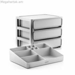 - 3 դարակ, մեծ տարողունակություն.մեր կոսմետիկայի կազմակերպիչը ձեզ առաջարկում է մեծ պահեստավորման տարողունակություն։ Այն ունի 3 մեծ դարակ՝ բազմաթիվ կոսմետիկա և այլ գեղեցկության պարագաներ պահելու համար, ինչպիսիք են՝ խարտոցները, մկրատները, պինցետները, բամբակյա սկավառակները, մազերի պարագաները և այլն։