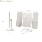 Այս լիցքավորվող եռակի ծալովի դիմահարդարման հայելին՝ խոշորացմամբ և LED լույսով, ապահովում է պարզ, լայն և ճշգրիտ տեսարան՝ հարմարավետ դիմահարդարման համար։