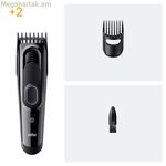 Braun HC5510 S5 մազ կտրող սարքը նախատեսված է ճշգրիտ և հարմարավետ կտրվածք ապահովելու համար, իդեալական է ամենօրյա անձնական խնամքի համար: Այս կոմպակտ և ֆունկցիոնալ մոդելը առանձնանում է իր էրգոնոմիկ դիզայնով, որը հեշտացնում է կառավարումը օգտագործման ընթացքում՝ թույլ տալով օպտիմալ վերահսկողություն նույնիսկ դժվարամատչելի վայրերում: Պատրաստված է սև գույնով, այն ունի անլար տեխնոլոգիա, որն ապահովում է շարժման առավելագույն ազատություն և հարմարավետություն՝ առանց էլեկտրական վարդակից անընդհատ կախվածության: Դրա մարտկոցով սնուցվող աղբյուրը ապահովում է բավարար ինքնավարություն բազմակի կտրվածքների համար, դարձնելով այն գործնական և՛ տանը, և՛ ճանապարհորդության ժամանակ: Բացի այդ, մազ կտրող սարքը լվացվող է և ջրակայուն, հատկանիշներ, որոնք պարզեցնում են մաքրումն ու սպասարկումը՝ ապահովելով հիգիենա և դիմացկունություն: Այս հատկությունները թույլ են տալիս օգտագործել նաև խոնավ միջավայրերում, ինչպիսին է լոգարանը, առանց վնասելու աշխատանքին կամ անվտանգությանը: Braun HC5510 S5-ը համատեղում է կայունությունը, օգտագործման հեշտությունը և տեխնիկական առանձնահատկությունները, որոնք բավարարում են նրանց կարիքները, ովքեր գնահատում են արագ, մաքուր և բազմակողմանի կտրվածքը։ Ընդհանուր առմամբ, այս մազ կտրիչը մազերի խնամքի հուսալի և արդյունավետ լուծում է՝ շեշտը դնելով հարմարավետության և գործնականության վրա։