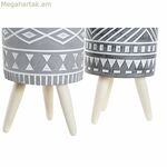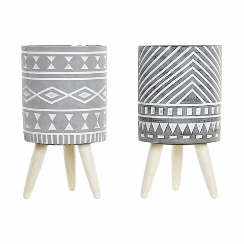DKD Home Decor Planter Grey Cement White Pinewood Boho (14,3 x 14,3 x 26,2 սմ) (2 հատ) լավագույն գնով։