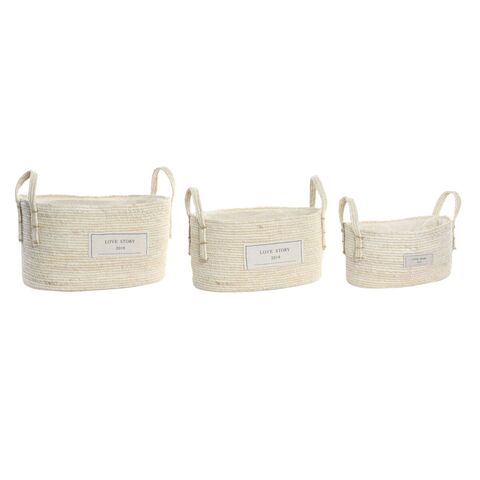 Զամբյուղների հավաքածու DKD Home Decor Natural Light Brown Natural Fibre Boho 34 x 23 x 20 սմ 3 հատ լավագույն գնով։