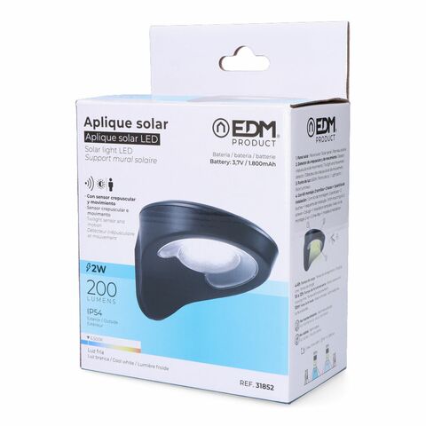 LED պատի լամպ EDM 31852 սև 2 W 1,8 W 200 Lm 155 Lm արևային շարժման սենսորով (6500 K) լավագույն գնով։