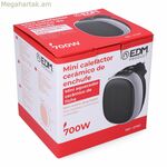 EDM Product էլեկտրական կերամիկական ջեռուցիչը կոմպակտ և արդյունավետ սարք է, որը նախատեսված է փոքր տարածքներում կետային ջեռուցում ապահովելու համար։ 700 W հզորությամբ այս մինի ջեռուցիչը սև գույնով առանձնանում է իր փոքր չափսերով՝ մոտավորապես 12.4 x 13.5 x 10.8 սմ, ինչը հեշտացնում է դրա տեղադրումը ցանկացած սենյակում կամ սեղանի վրա՝ առանց շատ տեղ զբաղեցնելու։ Այն ունի գերտաքացումից պաշտպանության համակարգ՝ անվտանգ և հուսալի օգտագործումն ապահովելու համար, ինչպես նաև մինչև 12 ժամ տևողությամբ ժամանակաչափ, որը թույլ է տալիս ավտոմատացված աշխատանք՝ ըստ օգտագործողի կարիքների։ Այն ունի երկու կարգավորվող արագություն, որոնք համատեղում են ջեռուցման ռեժիմը օդափոխիչ ֆունկցիայի հետ՝ առաջարկելով բազմակողմանիություն տարբեր եղանակների կամ ջերմաստիճանի նախասիրությունների համար։ LED էկրանի առկայությունը ապահովում է պարզ և ժամանակակից ինտերֆեյս՝ գործառույթները կառավարելու համար: Դրա դիզայնը ներառում է ներկառուցված հետևի միացուցիչ, որը հեշտացնում է միացումը և պարզեցնում պահեստավորումը: Արտադրված է Չինաստանում, այս ջեռուցիչը նախատեսված է նրանց համար, ովքեր փնտրում են գործնական, արդյունավետ և անվտանգ սարք, որը իդեալական է փոքր սենյակների, գրասենյակների կամ անձնական օգտագործման համար: Ընդհանուր առմամբ, այն կոմպակտ և ֆունկցիոնալ լուծում է, որը համատեղում է էներգաարդյունավետությունը, անվտանգությունը և հարմարավետությունը փոքր չափսի մեջ: