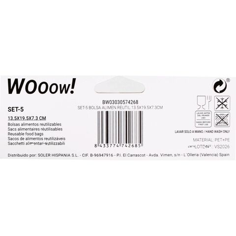 Բազմակի օգտագործման սննդի տոպրակների հավաքածու 5 հատ 13,5 x 19,5 x 7,3 սմ (36 միավոր) լավագույն գնով։