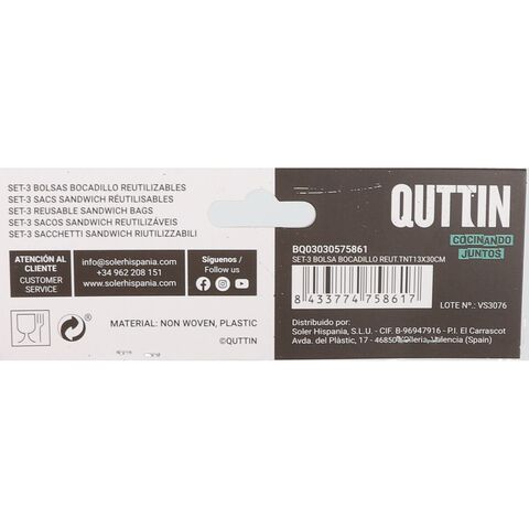 Կրկնակի օգտագործման սննդի տոպրակների հավաքածու Quttin սենդվիչի տուփ TNT (ոչ հյուսված) 3 հատ 13 x 30 սմ (36 միավոր) լավագույն գնով։