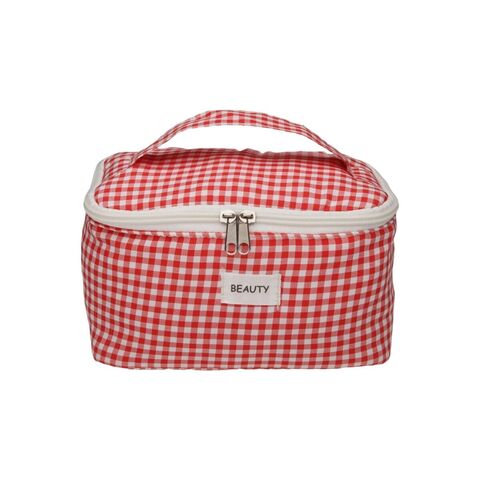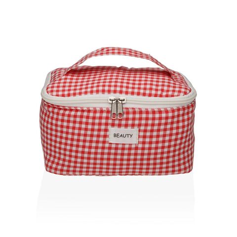 Versa Vichy-ի ճանապարհորդական լվացքի պայուսակը կարմիր պոլիեսթեր տեքստիլից 12 x 12 x 20 սմ!