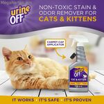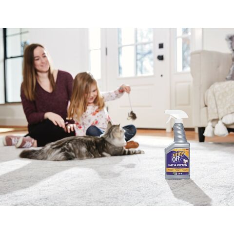 Urine Off Cat & Kitten Formula-ն անասնաբույժների կողմից խորհուրդ տրվող միջոց է կատվի մեզի հոտի և բծերի հեռացման համար: Urine Off Cat & Kitten Formula-ն օգտագործում է կենսաֆերմենտային տեխնոլոգիա և բարձր բակտերիաների կոնցենտրացիա՝ հատուկ թիրախավորելով կատվի և կատվի ձագերի մեզը՝ մշտապես հեռացնելով բծերը և հոտերը գրեթե ցանկացած մակերեսից: Մեր ոչ պաթոգեն բակտերիաների մեջ միկրոօրգանիզմների և դրանց ֆերմենտների համադրությունը համատեղ աշխատում է մեզի սուր բույրը առաջացնող միզաթթուն և մակերեսին կպչող միզանյութը՝ արդյունավետորեն հեռացնելով մեզի բոլոր բաղադրիչները, երբ օգտագործվում է ըստ ցուցումների: Urine Off-ը ԱՄՆ Գյուղդեպարտամենտի կողմից հավաստագրված կենսահիմքով արտադրանք է և ունի Գորգերի և գորգերի ինստիտուտի հաստատման կնիքը: Urine Off-ը անվտանգ է օգտագործել կենդանիների և մարդկանց մոտ:
