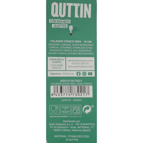 Չժանգոտվող պողպատից քամոց Quttin կոնաձև չժանգոտվող պողպատից (36 միավոր) (16 սմ) լավագույն գնով։