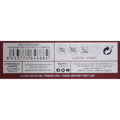 Quttin ուղղանկյուն թխման թավա 28 x 15 սմ 0,5 մմ (12 միավոր) լավագույն գնով։