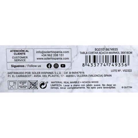 Quttin մարմարե ակացիա կտրատախտակ բռնակով 38 x 18 սմ (8 միավոր) լավագույն գնով։