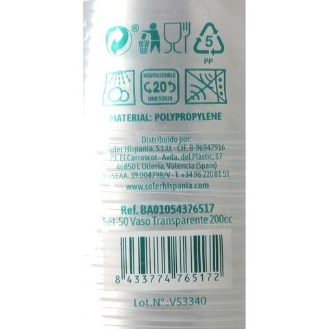 Բազմակի օգտագործման բաժակների հավաքածու Algon Transparent 50 հատ 200 մլ (18 միավոր) լավագույն գնով։
