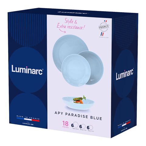 Հայտնի Luminarc ապրանքանիշի Apy Paradise Blue ճաշի սպասքի հավաքածուն ապակուց պատրաստված 18 հատ հավաքածու է, որը իդեալական է նրանց համար, ովքեր ցանկանում են համատեղել ֆունկցիոնալությունն ու ոճը սեղանի շուրջ: Դրա կապույտ գույնը թարմ, ժամանակակից հպում է հաղորդում, որը բարելավում է ցանկացած ճաշի կամ միջոցառման ներկայացումը՝ հարմարվելով ինչպես առօրյա առիթներին, այնպես էլ ավելի պաշտոնական հավաքույթներին: Այս հավաքածուն ներառում է 6 աղանդերի ափսեներ՝ 19 սմ տրամագծով, որոնք հիանալի են քաղցրավենիք կամ թեթև խավարտներ մատուցելու համար, և 6 խորը ափսեներ՝ 20 սմ տրամագծով, որոնք առաջարկում են ապուրների, կրեմների կամ ռագուների համար անհրաժեշտ բազմակողմանիություն՝ ապահովելով լիարժեք ճաշի փորձ: Բարձրորակ ապակին երաշխավորում է ամրություն և բծերի նկատմամբ դիմադրություն, ինչը հեշտացնում է մաքրումը ձեռքով կամ աման լվացող մեքենայում, և այն նաև անվտանգ է միկրոալիքային վառարանում օգտագործելու համար՝ սնունդը վերատաքացնելու ժամանակ: Luminarc-ի գործնական և նրբագեղ դիզայնը ապահովում է, որ յուրաքանչյուր կտոր ֆունկցիոնալ լինի՝ միաժամանակ գեղագիտականորեն նպաստելով միջավայրին, ապահովելով պարզություն և տեսողական թեթևություն: Apy Paradise Blue ճաշի սպասքը հավասարակշռված ընտրություն է նրանց համար, ովքեր փնտրում են ամբողջական, ներդաշնակ հավաքածու՝ պատրաստված ամուր և նրբագեղ նյութից, որը հարմար է ամենօրյա օգտագործման կամ հատուկ տոնակատարությունների համար։