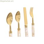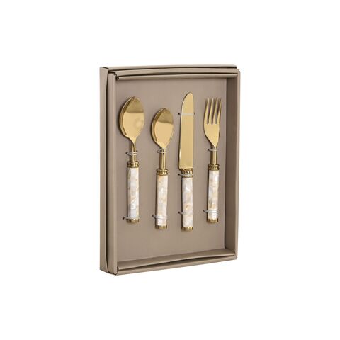 Դանակ-պատառաքաղ Home ESPRIT Սպիտակ Ոսկեգույն Չժանգոտվող պողպատ Մարգարիտ 4,5 X 2 X 21 սմ 16 հատ