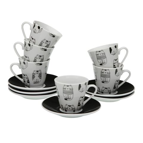 6 բաժակների հավաքածու ափսեով Versa ճենապակյա կատու