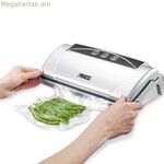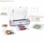 Princess վակուումային փաթեթավորմամբ սարքը՝ 01.492967.01.001 մոդելը, նախատեսված է սնունդը հերմետիկ կնքման միջոցով պահպանելու համար, որը հեռացնում է օդը, այդպիսով երկարացնելով թարմությունը և կանխելով մանրէների աճը: Պատրաստված բարձրորակ պլաստմասսայից արծաթե ծածկույթով, այս մեքենան համատեղում է ֆունկցիոնալությունը գրավիչ դիզայնի հետ, որը հեշտությամբ տեղավորվում է ցանկացած խոհանոցում: Այն աշխատում է 110 Վտ հզորությամբ, սնուցվում է 230 Վ լարմամբ, ապահովելով արդյունավետ աշխատանք կենցաղային կամ կիսապրոֆեսիոնալ օգտագործման համար: Դրա աշխատանքը լիովին ձեռքով է, ինչը թույլ է տալիս օգտատիրոջը վերահսկել կնքման գործընթացը՝ ըստ կոնկրետ կարիքների: Առաջարկվող տարողությունը մինչև 1 լիտր տարողությամբ տարաներ կամ տոպրակներ են, իդեալական են փոքր և միջին չափաբաժինների համար, օպտիմալացնելով տարածքը և պահպանումը: Այս Princess փաթեթավորող սարքը առանձնանում է որպես սննդի պահպանման և կազմակերպման գործնական գործիք՝ նպաստելով նախնական պատրաստմանը և թափոնների կրճատմանը: Ամփոփելով՝ 01.492967.01.001 մոդելը առաջարկում է պարզ և արդյունավետ լուծում՝ սնունդը ավելի երկար թարմ պահելու համար, ապահովելով ֆունկցիոնալություն և հարմարավետություն խոհանոցում: